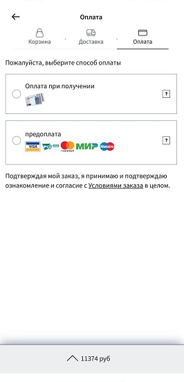 - Укажите адрес доставки – доступные способы получения отобразятся автоматически.